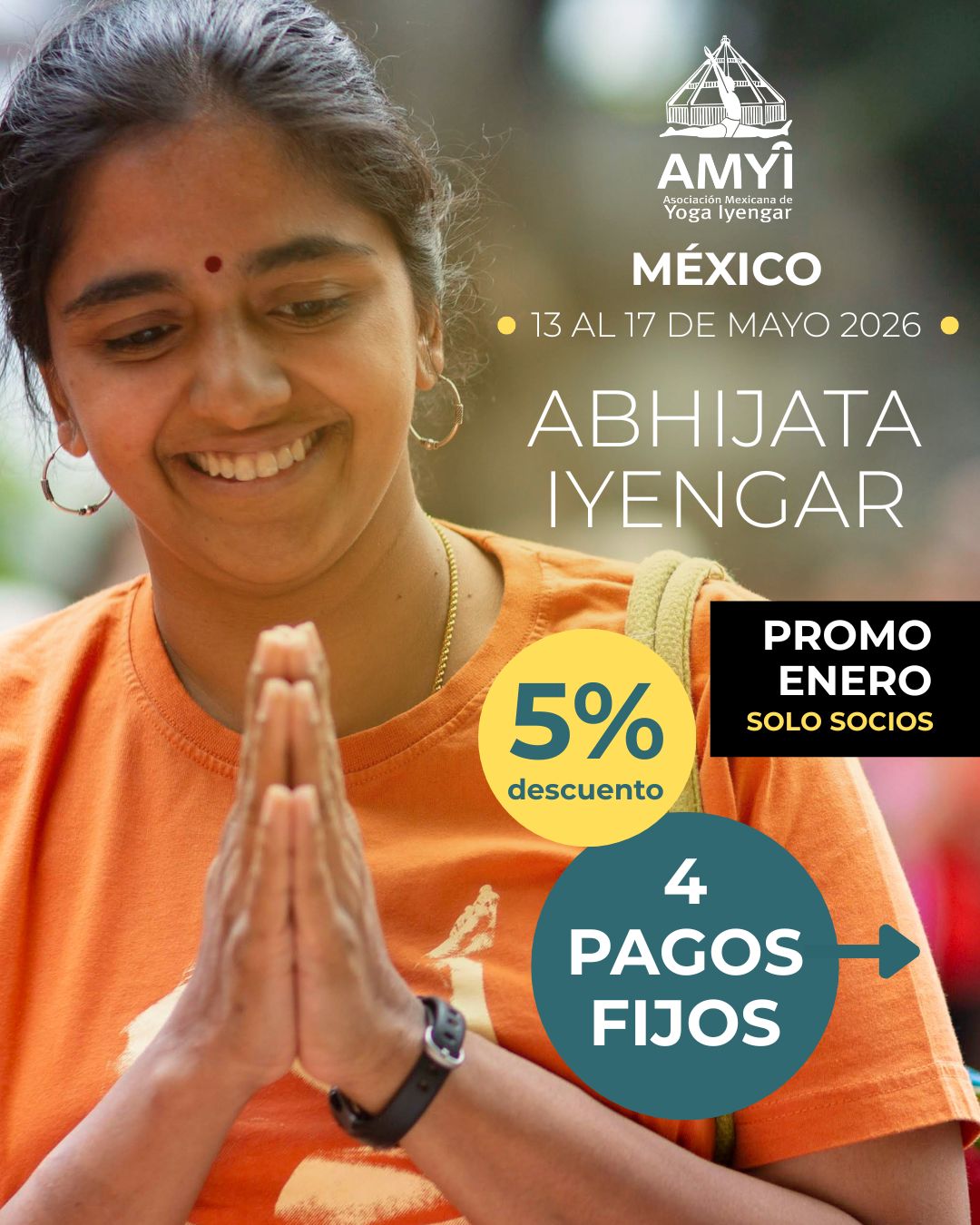 Estimada Comunidad, los invitamos al Taller Presencial que dará Abhijata Iyengar para la Asociación Mexicana de Yoga Iyengar, A.C. (AMYI) los días 13, 14, 15, 16 y 17 de Mayo del 2026 que se llevará a cabo en el Hotel Holiday Inn Trade Center, Ciudad de México.